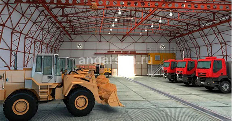 Для комфортной работы внутри ангара важно предусмотреть систему вентиляции и освещения. Это особенно актуально, если строение используется как гараж для ремонта техники.