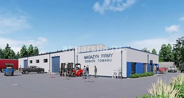 Проект отапливаемого 2 этажного склада с офисом из металлоконструкций на 3 69,2 м3 / 645,9 м2 с офисом в Приобье
